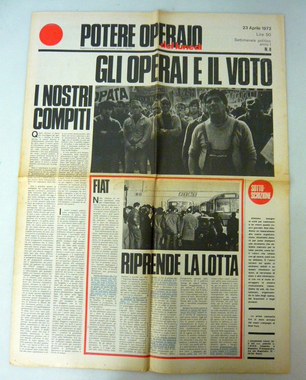 POTERE OPERAIO DEL LUNEDÌ,n.8,23 apr.1972.Settimanale politico[storia,movimento