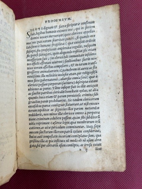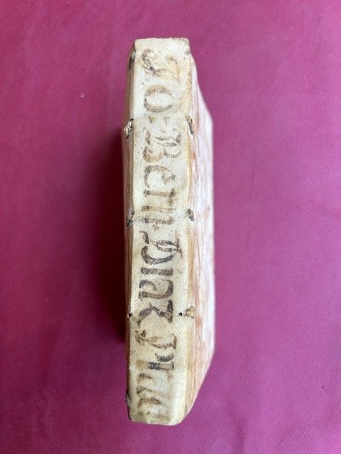 In-8° (15,7 10,8 cm.), cc. (8), 171, (1), marca tipografica del Valgrisi al frontespizio e al colophon, legatura coeva in piena pergamena floscia, nervi passanti, titolo manoscritto al dorso. Bel esemplare fresco e in affascinante legatura dell'epoca. Edizione originale. Nato a Siviglia, formatosi all'Università di Salamanca e nominato vescovo di Calahorra y La Calzada nel 1545, Juan Bernal Díaz de Luco fu, insieme a Ignacio de Loyola e Bartolomeo de Las Casas, uno dei principali combattenti della corruzione sociale ed ecclesiale durante l’età delle riforme. Fu il rappresentante più esplicito della Spagna allo storico Concilio di Trento e sostenne il diritto canonico come mezzo per riportare alla sua missione originaria una Chiesa smarrita. Pubblicato nella sua forma originale nel 1543 e ristampato nel 1549, l'influente trattato di Díaz de Luco sulla procedura penale nel diritto canonico, conteneva un'ampia discussione su blasfemia, eresia, divinazione (sortilegio), scomunica, tortura, omosessualità (nefandi criminis rei), celebrazione illegale della messa e altre preoccupazioni della prima era moderna, nonché questioni senza tempo come l'omicidio, la bigamia, la fornicazione, l'usura, la diffamazione e l'ubriachezza.