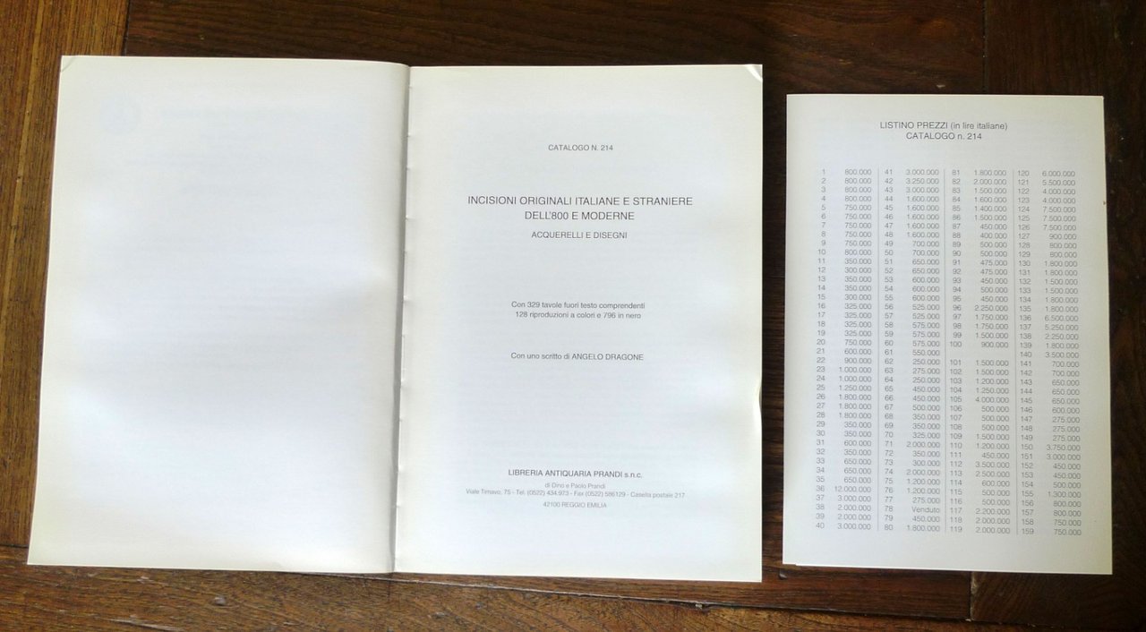 PRANDI CATALOGO 214 1996 INCISIONI ORIGINALI ITALIANE,STRANIERE[arte acquerelli