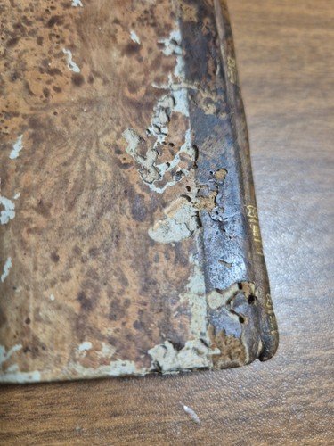 V + 177 pagine. Copertina coeva in mezza pelle. Dimensioni: 12 x 20 cm. Stato di conservazione: buono (fioriture, gallerie di tarli antichi al piede del dorso)