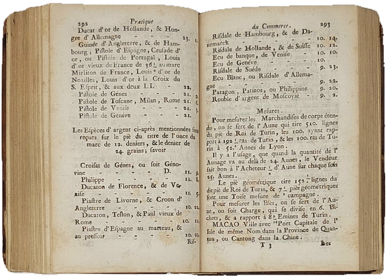 Pratique du Commerce pour la facilité du Négociant dans la combinaison des changes et dans la réduction des monnoies, poids et mesures de toutes les places de commerce de l'Europe... de l'Asie, de l'Asie et de l'Amérique, et le rapport qu'elles ont à celles de Turin.