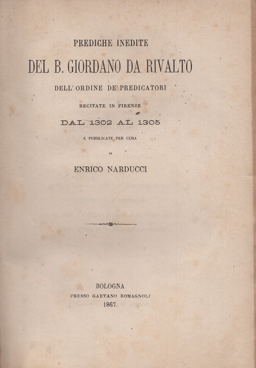 Prediche inedite del B. Giordano da Rivalto dell'Ordine dei Predicatori recotate in Firenze dal 1302 al 1305