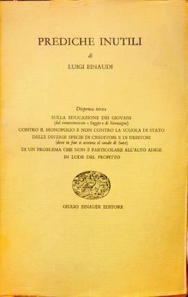 Prediche inutili. Dispensa terza. Sulla educazione dei giovani (dal ventesimosesto “Saggio “ di Montaigne). Contro il monopolio e non contro la scuola di stato delle diverse specie di creditori e di debitori (dove in fine si accenna al canale di Suez). Di un problema che non è particolare all’alto adige in lode del profitto.