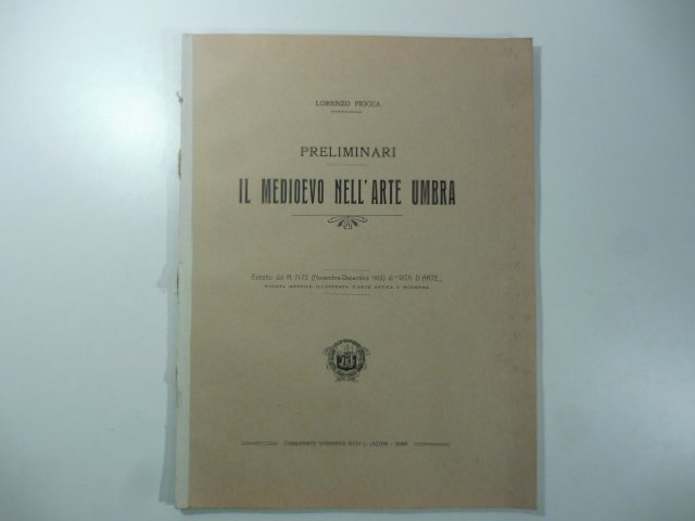 In 4, cm 22,5 x 30, pp. 20 con illustrazioni fotografiche nel testo. Brossura editoriale. Estratto editoriale dalla Rivista mensile illustrata d'arte antica e moderna. N. 71 -72. 1913. Saggio dedicato all'achitetettura medioevale in Umbria. Sono descritti : Chiesa di S. Angelo in Perugia. Chiesa di S. Salvatore, Spoleto. Chiesa di S. Pietro, Bovara. Chiesa di S. Lorenzo, Spoleto. Chiesa di S. Giuliano, Spoleto. Chiesa di S. Prospero, Perugia ecc.