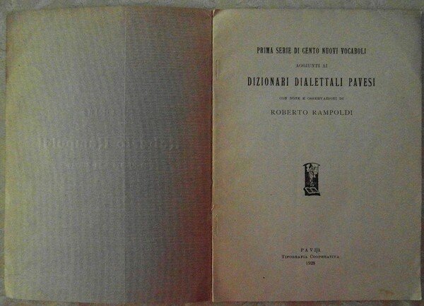 PRIMA SERIE DI CENTO NUOVI VOCABOLI AGGIUNTI AI DIZIONARI DIALETTALI PAVESI. CON NOTE E OSSERVAZIONI DI ROBERTO RAMPOLDI.