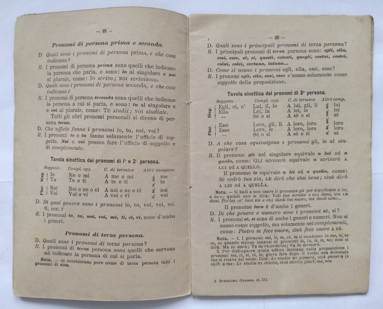 PRIME NOZIONI DI GRAMMATICA ITALIANA di G. Borgogno. Ad uso della Terza Classe Elementare.