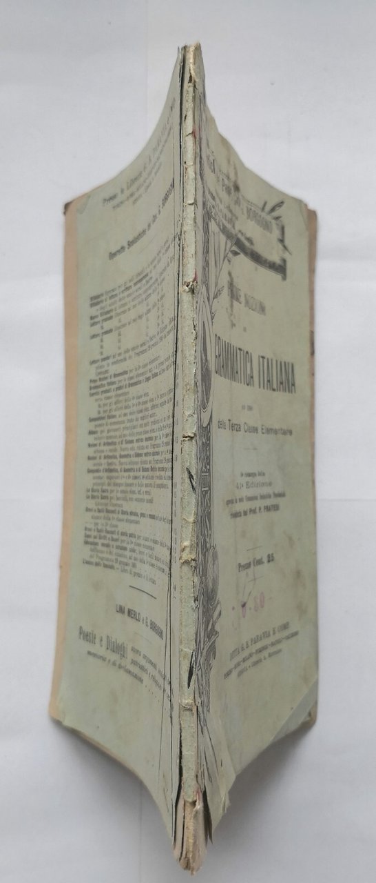 PRIME NOZIONI DI GRAMMATICA ITALIANA per III elementare Borgogno 1916 Libro