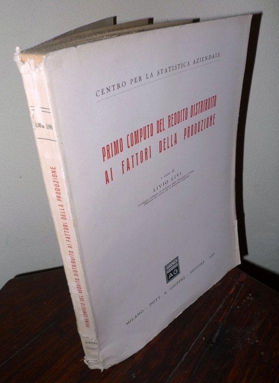 PRIMO COMPUTO DEL REDDITO DISTRIBUITOAI FATTORI DELLA PRODUZIONENEGLI ANNI 1953, 1954, 1955.A cura di Livio Livi.Milano, Dott. A.Giuffrè Editore, 1958,brossura, 25x18 cm., pp.VII-211,peso: g.400