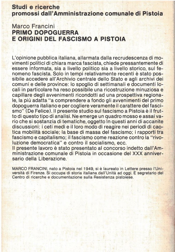 Primo dopoguerra e origini del fascismo a Pistoia