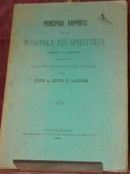 Principaux rapports sur le monopole des spiritueux présentés à la Commission institué près la Société russe d’hygiène publique pour étudier la question de l’alcoolisme. | Libri antichi e moderni |