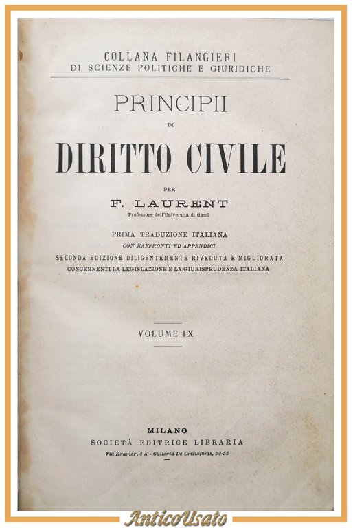 PRINCIPI DI DIRITTO CIVILE di F. Laurent. SOLO IL Volume IX.