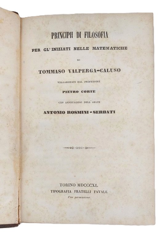 Principii di filosofia per gl'iniziati nelle matematiche, volgarizzati da Pietro Corte; con annotazioni dell'abate Antonio Rosmini-Serbati.