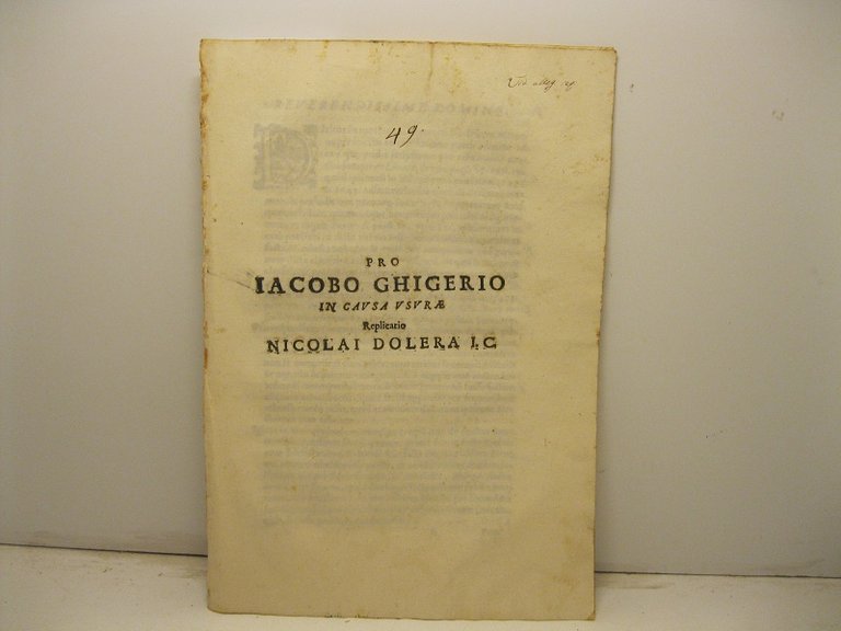 Pro Jacobo Ghigerio in causa usurae. Replicatio Nicolai Dolera I. C. SEGUE: IDEM, Pro Jacobo Ghigerio in causa usurae. Admotiuum Reverendiss. Domini Vicarii General. Archiepiscopalis Genuae. Respondebat Nicolaus Dolera I. C.