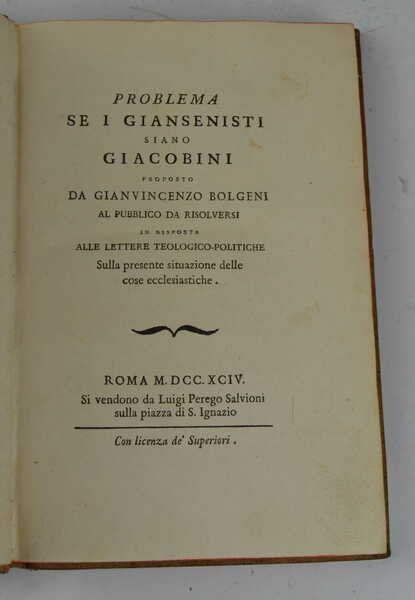 Problema se i Giansenisti siano Giacobini. In risposta alle Lettere teologico politiche Sulla presente situazione delle cose ecclesiastiche.