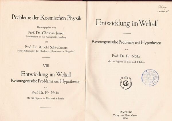 Probleme der Kosmischen Physik:Entwicklung im Weltall kosmogonische probleme und hypothesen