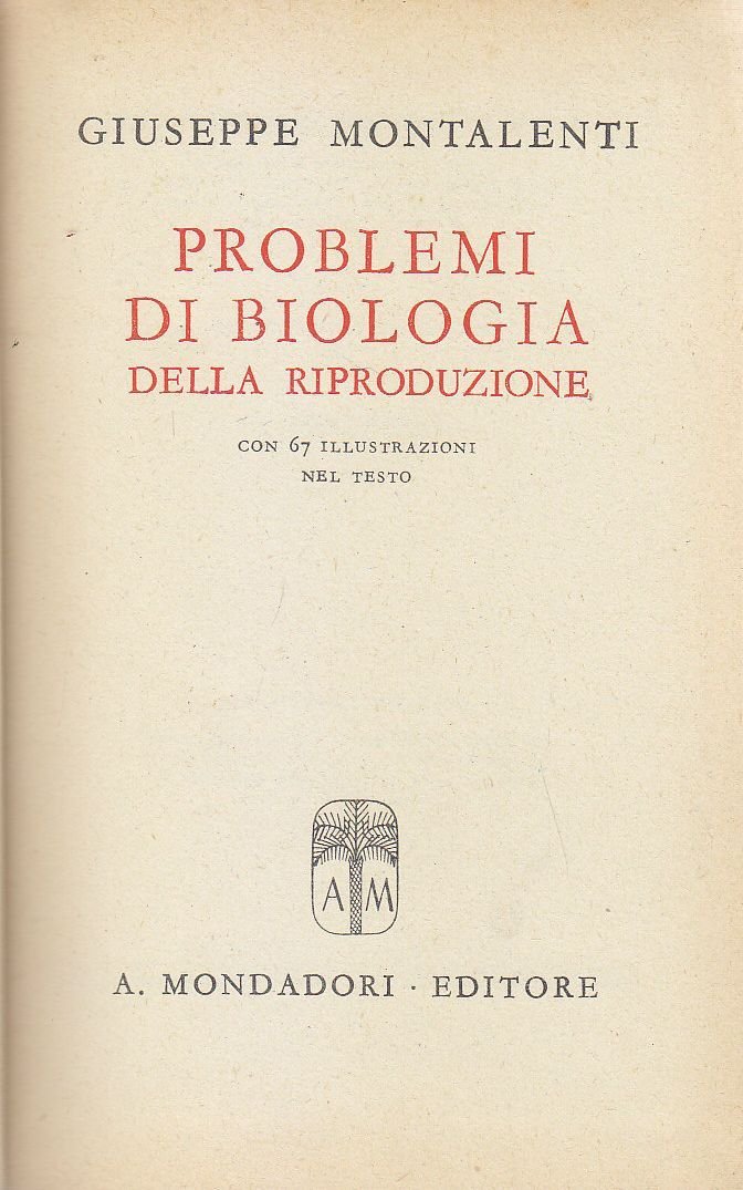 PROBLEMI DI BIOLOGIA DELLA RIPRODUZIONE Giuseppe Montalenti 1945 Mondadori libro