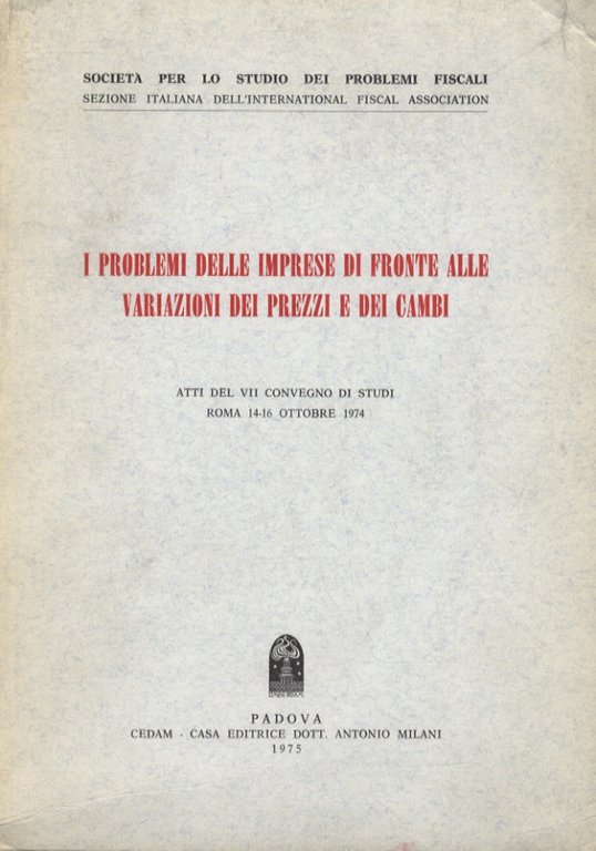 Padova, Cedam, 1975, in-8, brossura editoriale, pp. 337. Con interventi, fra gli altri, dei proff. B. Visentini, G. Sciarrino, G. Dufey, P. Gmuer. Pubblicazione per la “Società per lo Studio dei Problemi Fiscali (International Fiscal Association)”. Stato di nuovo.