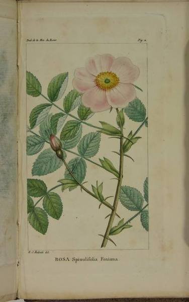 Prodrome de la monographie des espèces et variétés connues du genre rosier, divisées selon leur ordre naturel, avec la synonymie, les noms vulgaires, un tableau synoptique, et deux planches gravées en couleur.