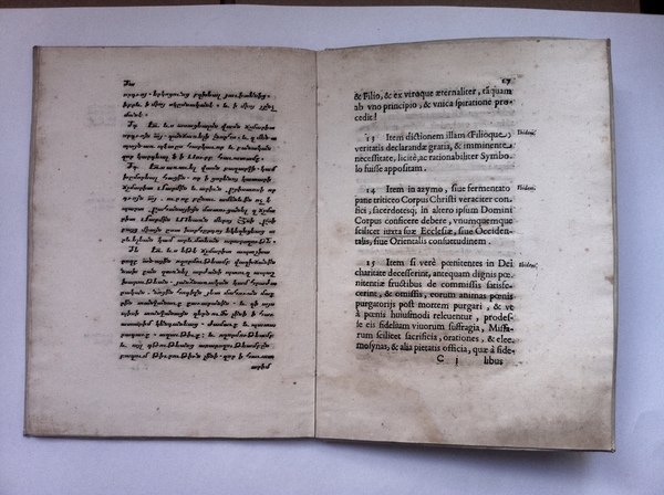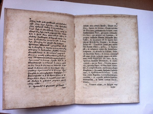 In -4°, pp. 29, (3b), pergamena; marca al frontespizio. Il testo a fronte in latino e armeno include i numeri di pagina (in armeno sulle pagine sinistre). Prima edizione.