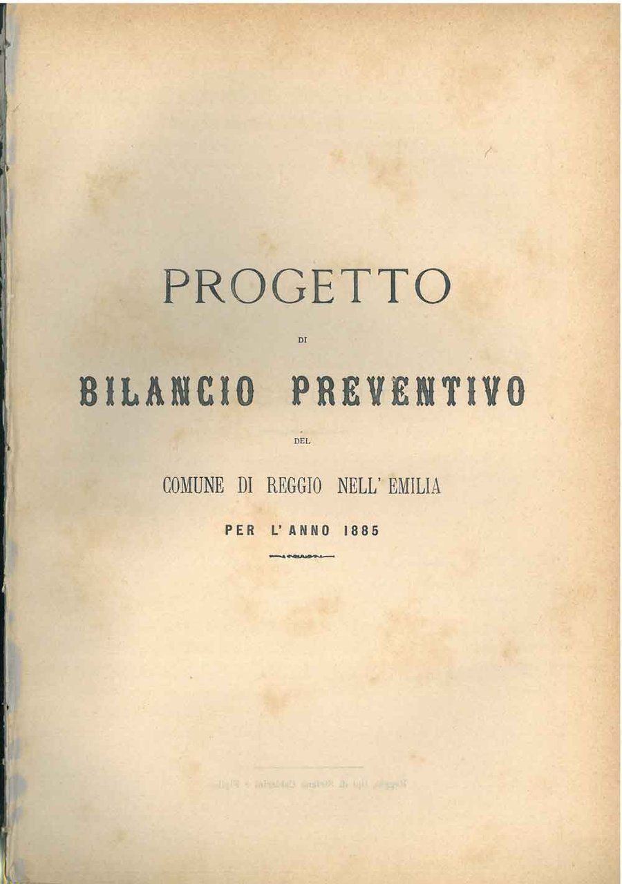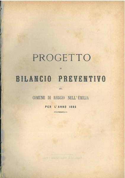 Progetto di bilancio preventivo del comune di Reggio nell'Emilia per l'anno 1885