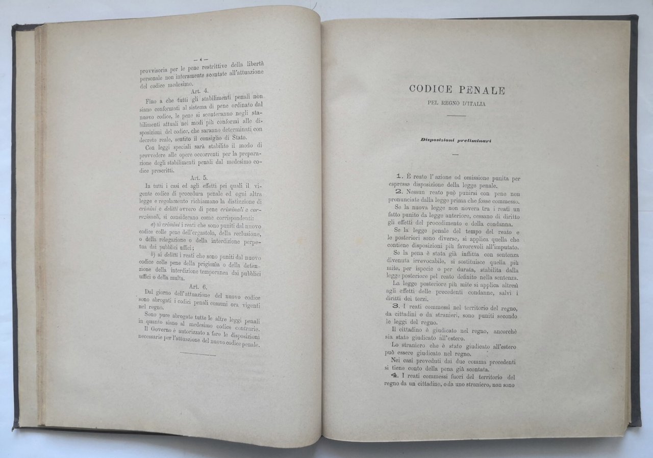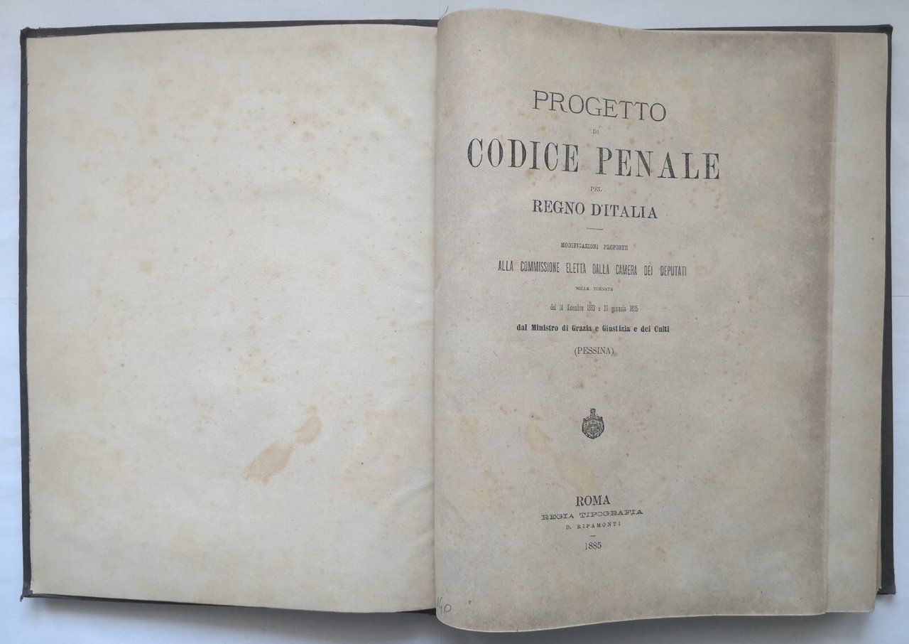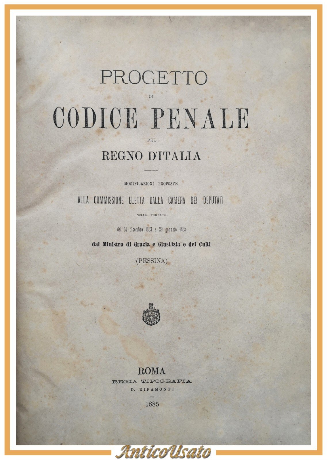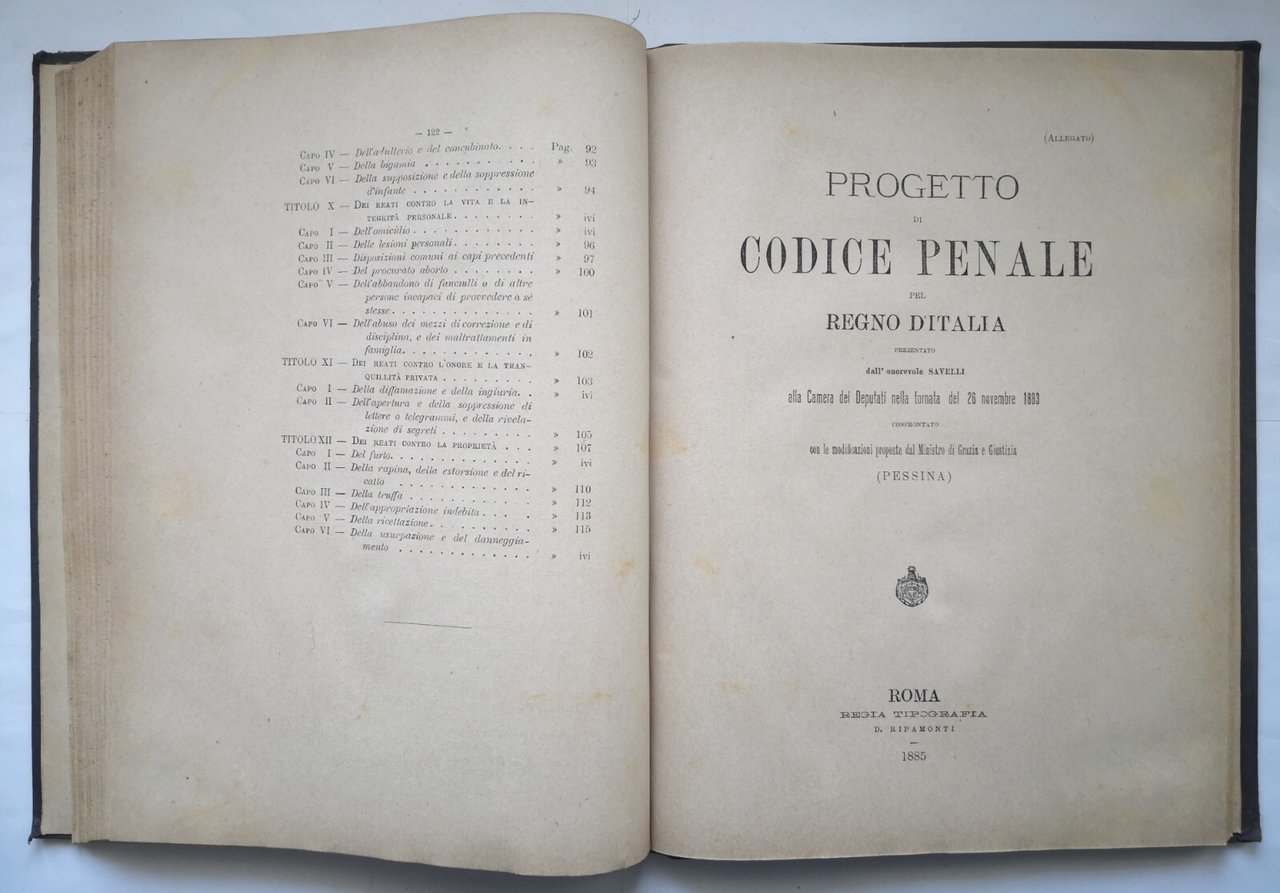 PROGETTO DI CODICE PENALE PEL REGNO D'ITALIA di Pessina 1885 Ripamonti Libro