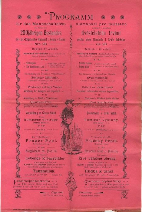 Programm für das Mannschatsfest aus Anlass des 200jährigen Bestandes des Inf. -Regimentes Humbert I. König von Italien Nro. 28.