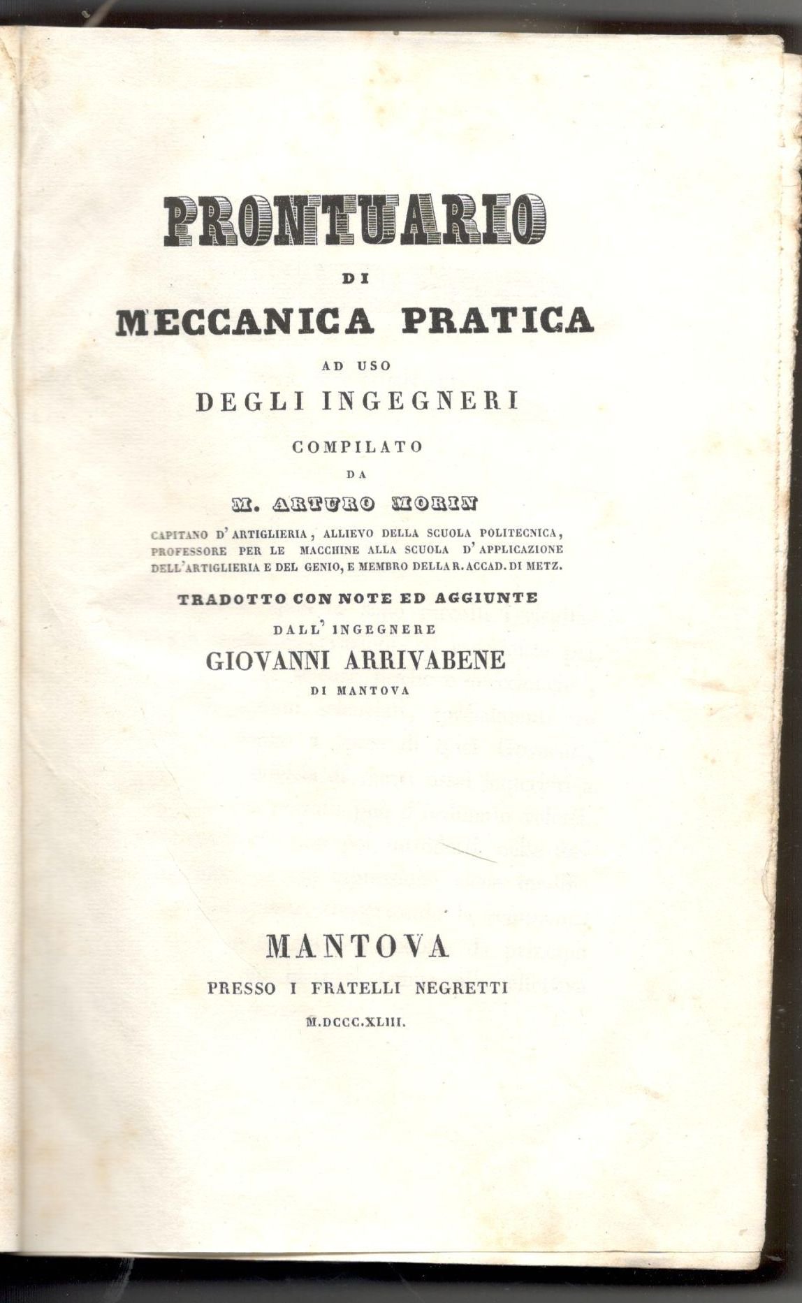 Prontuario di meccanica pratica ad uso degli ingegneri | Libri antichi e moderni | Morin, Arturo