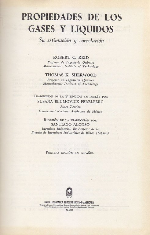 PROPIEDADES DE LOS GASES Y LIQUIDOS di Robert Reid e Thomas Sherwoods Union
