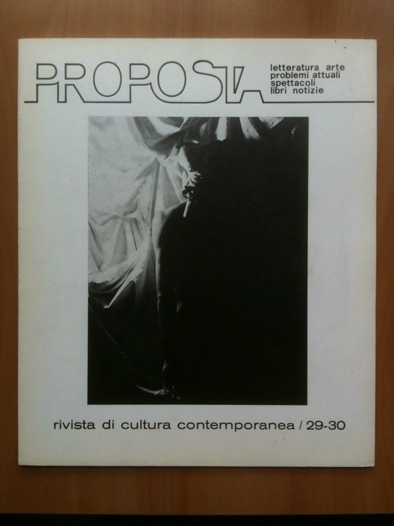PROPOSTARivista di cultura contemporanea Anno V N^ 29-30 / gennaio-aprile 1977Stab. Lito - Tip. Editoriale DE MARTINI di G. Ricolo e C. s.a.s. BeneventoDirettore responsabile: Clemente Cassese - Direttore: Antonio PetrilliRedazione: Agostino Lombardi, Biagio Osvaldo Severini, Alberto Abbuonandi, Enrico Narciso, Luigi Telaro, Enzo Esposito, Mimmo Paladino, Mario Coletta, Goffredo Zarro, Dante Del Vecchiocopertina: un opera di Enzo Esposito da "Il desiderio è vivere il proprio silenzio"Interno: Bertrand Russel attraverso l'autobiografia - Biagio Osvaldo Severinirivista in buono statoE1336