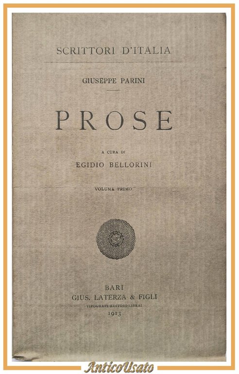 PROSE di Giuseppe Parini 2 volumi a cura di Egidio Bellorini 1913 Laterza Libro