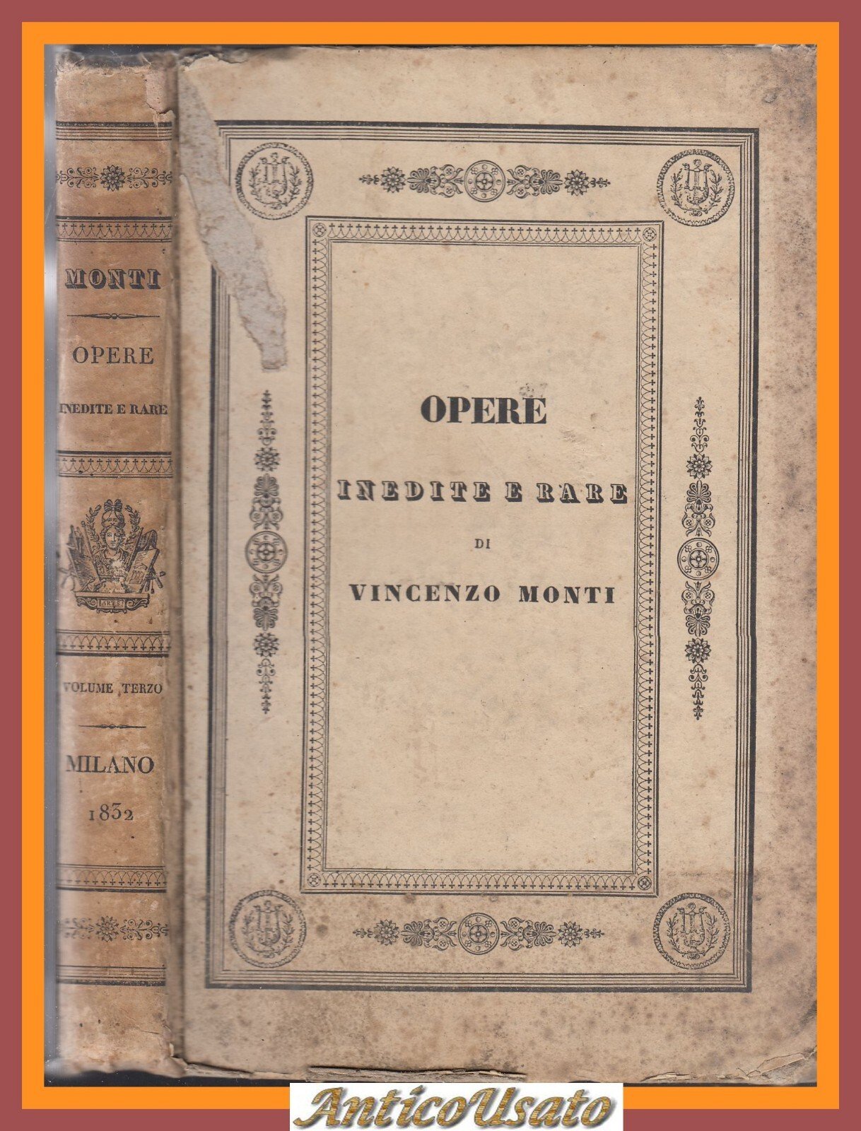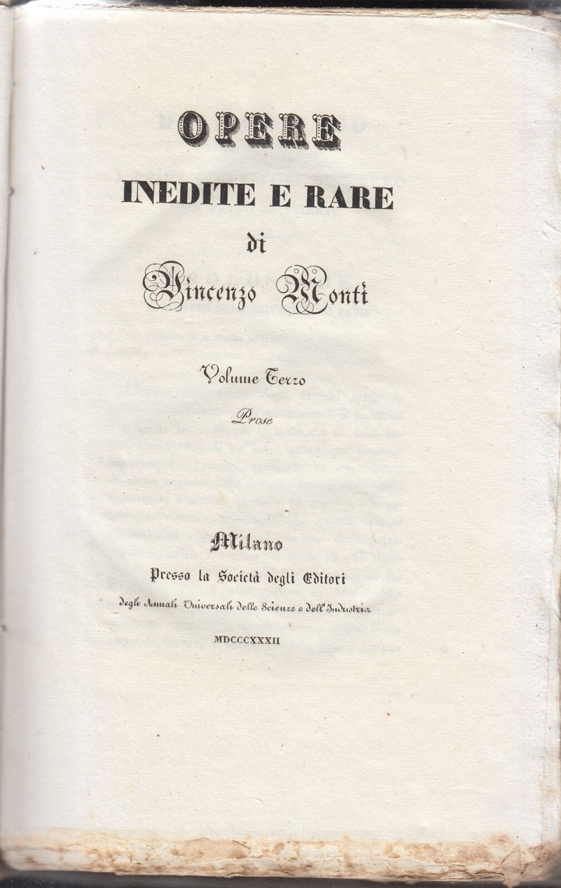 PROSE di Vincenzo Monti Opere Inedite e Rare volume III 1832 libro antico