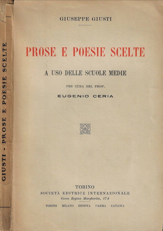 Per cura del prof. Eugenio Ceria. Brossura in cartoncino, scurita, con strappetti al dorso e leggeri segni d'uso. Pagine ingiallite, con tagli irregolari e rare sottolineature a matita. Numero pagine 230.