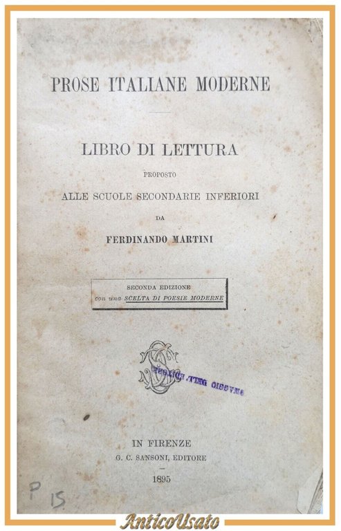 PROSE ITALIANE MODERNE LIBRO DI LETTURA Ferdinando Martini 1895 Sansoni Scuola