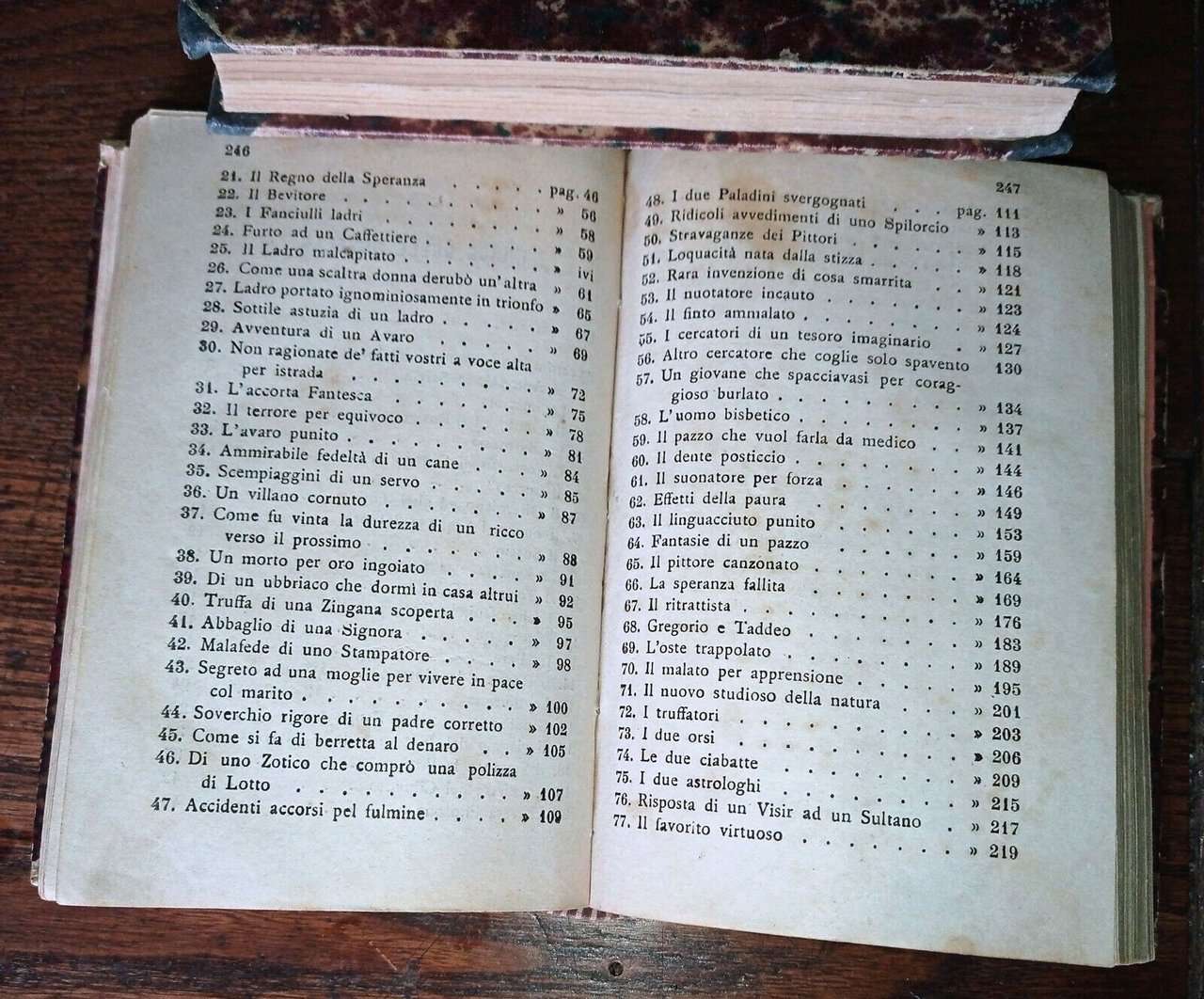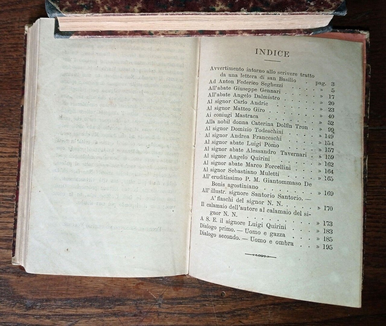 PROSE SCELTE DEL CONTE GASPARO GOZZI.VOL.I. FAVOLE E NOVELLE.VOL.II. LETTERE E DIALOGHI[2 VOLUMI RILEGATI IN UN UNICO TOMO,OPERA COMPLETA].Brescia, Libreria e Tipografia di Giovanni Bersi, 1877,copertina rigida, rilegatura coeva in mezza pelle,14x9,5 cm., pp.248;211,peso: g.220