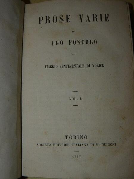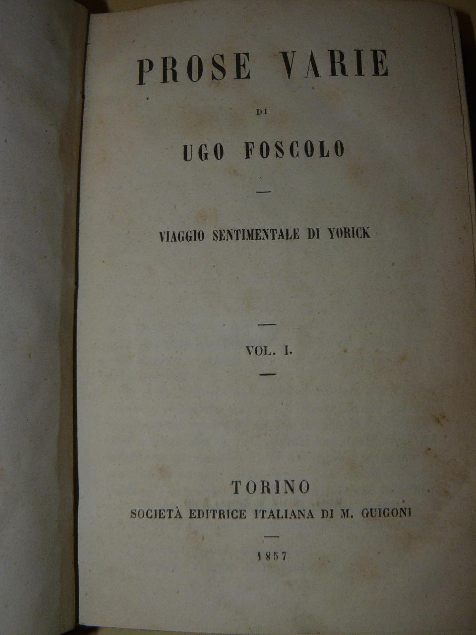 Prose varie. Viaggio sentimentale di Yorik unito a Edmenegarda canto del cava. Giovanni Prati. Milano, Guigoni, 1865