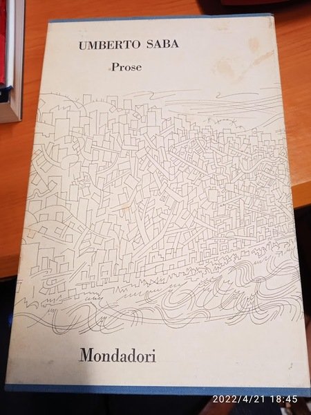 PRIMA EDZIONE curata da Linuccia Saba, prefazione di Guido Piovene e nota critica di Aldo Marcovecchio. Questa ampia raccolta comprende un grande numero di prose di Saba diversamente note. Ve ne sono di edite, di interamente inedite, di edite solo in un giornale, di edite in pochi esemplari e in anni lontani, ignorate dalla maggioranza; altre, come le Scorciatoie, sono più recenti ma aspettano di essere lette e meditate in modo meno falso e distratto di quando apparvero. La raccolta, l’ordinamento e le note sono un lavoro, durato anni, della figlia Linuccia, e costituiscono un’opera congeniale, perciò creativa. Restano fuori solamente l’epistolario e un romanzo incompiuto, che saranno pubblicati a parte. Cartonato con sovraccoperta illustrata e cofanetto. Carta di riso. Pp. 1086 + facsimile di lettera manoscritta nella tasca posteriore e ritratto in antiporta dell'autore opera di Carlo Levi. Ottime condizioni.