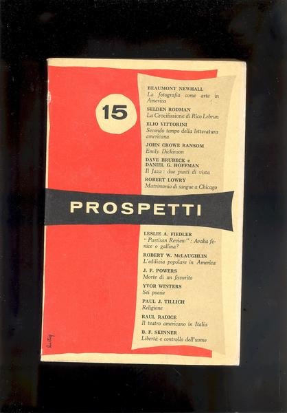IN 8°, pp.269 ( 3 ), COPERTINA EDITORIALE A DUE COLORI COIN TITOLO E INDICE. NUMEROSE ILLUSTRAZIONI in b/n.f.t. PUBBLICAZIONE TRIMESTRALE PUBBLICATA DALLA CASA EDITRICE SANSONI PER LA INTERCULTURAL PUBLICATIONS INC. DI NEW YORK. QUINDICESIMO NUMERO, PRIMAVERA 1956. DALL'INDICE : ARCHITETTURA, ARTE, FOTOGRAFIA, LETTERATURA AMERICANA, MUSICA, NARRATIVA, POESIA, RELIGIONE, SOCIOLOGIA, SPORT, STORIA SOCIALE, TEATRO. OTTIMA CONSERVAZIONEID 4785