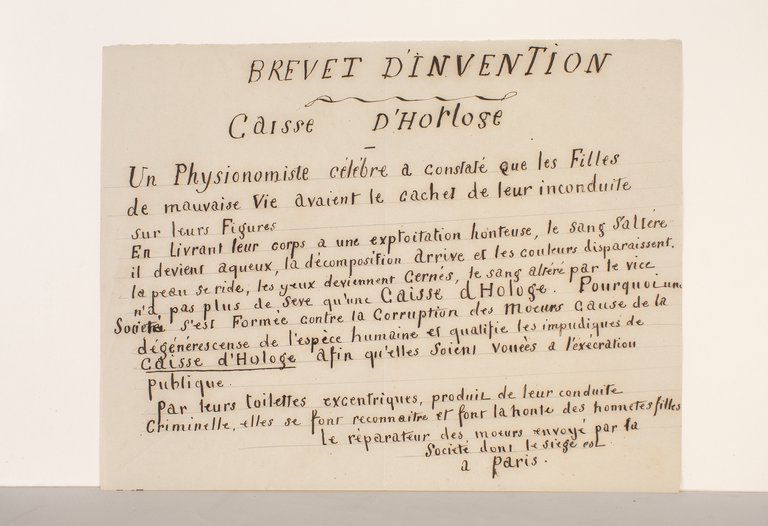 (Prostitution) Brevet d'invention - Caisse d'Horloge