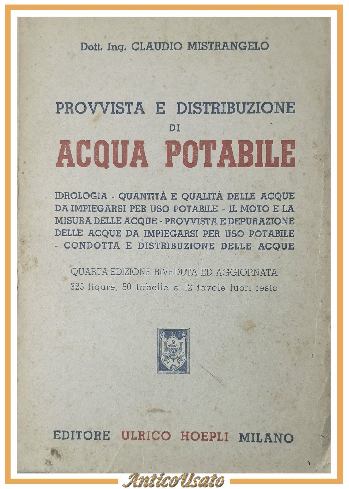 PROVVISTA E DISTRIBUZIONE DI ACQUA POTABILE di Claudio Mistrangelo 1945 Hoepli