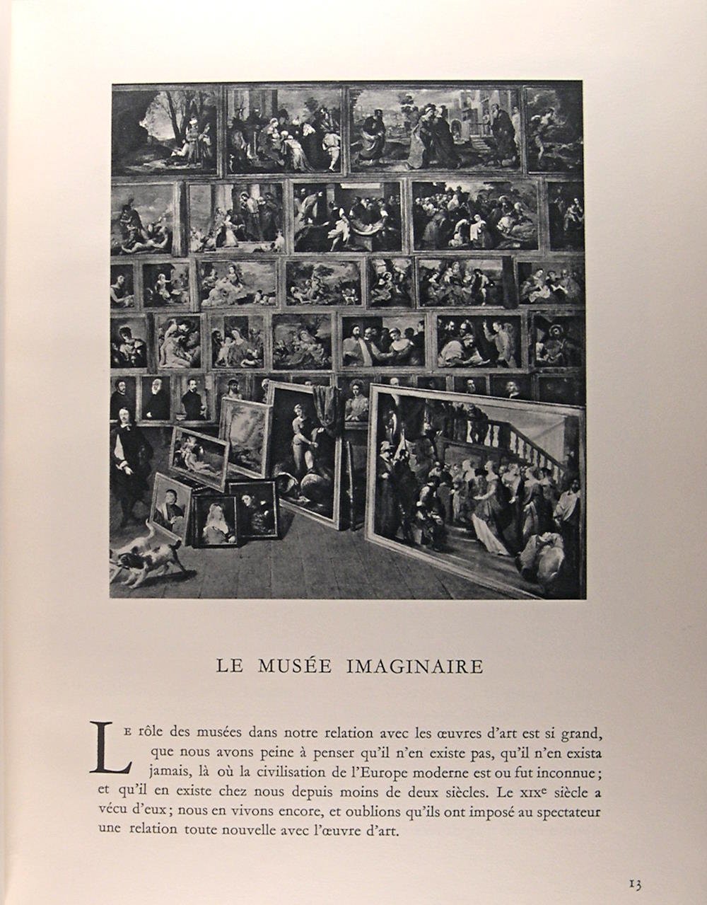 Skira éditeur, 1947. In/4 cartonnage éditeur, illustrations en noir in-texte et en couleur contrecollées, 155 pages. Premier volume des essais de Psychologie de l’art. Le musée a imposé une relation nouvelle avec l'œuvre d'art. C'est un phénomène récent, qui date de la période de la Renaissance et qui n'existe qu'en Europe. Cette relation nouvelle délivre les œuvres de leur fonction, ce que Malraux appelle une métamorphose. Un crucifix n'est plus d'abord un crucifix, un portrait n'est plus un portrait de quelqu'un ; l'œuvre d'art avait toujours été une image. Or, pour le musée, il n'y a plus ni vénération, ni ressemblance, ni imagination, décor ou possession, mais des images qui diffèrent des choses et qui se trouvent confrontées en tant que telles. Pour Malraux, l'homme recrée le monde face à Dieu, et conquiert par l'art le sens de sa vie contre l'oubli et la mort. Un musée est un résultat de hasards, c'est un possible mutilé. Le voyage d'art repose sur la mémoire optique qui n'est pas infaillible. Mais aujourd'hui, grâce à la photographie, il est possible d'avoir à disposition les œuvres de toutes les civilisations. Il devient donc possible de confronter toutes les œuvres.