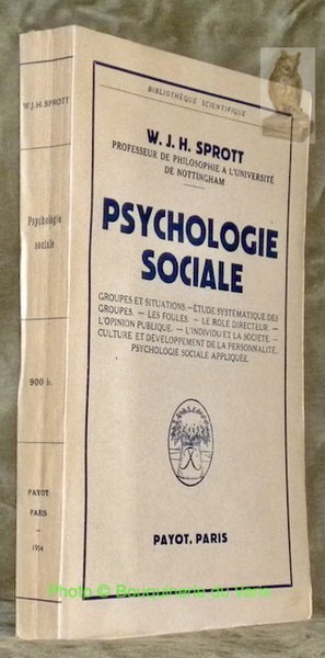 Psychologie sociale. Groupes et situations. Etude systématique des groupes. Les foules. Le role directeur. L’opinion publique. L’individu et la société. culture et développement de la personnalité. Psychologie sociale appliquée. Traduction de Jean Laroche. Collection Bilbiothèque Scientifique. | Libri antichi e moderni | Sprott, W. J. H.
