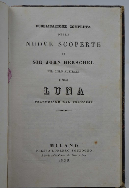 Pubblicazione completa delle nuove scoperte nel cielo australe e nella Luna. Traduzione dal francese.