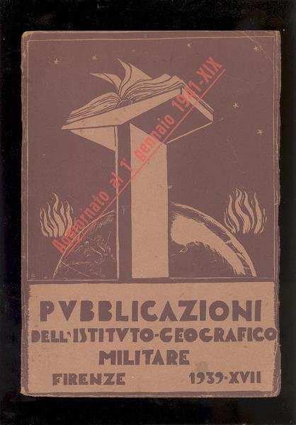 IN 8, pp.40 + VII CARTE + v.r.f.t. CON LE SEZIONI DEL QUADRO D'UNIONE DEI FOGLI DELLA CARTA DEL REGNO D'ITALIA ( OMESSA LA VI SEZIONE ) + c.2 CON LE AGGIUNTE E VARIANTI AL TESTO DEL CATALOGO GENERALE DELLE PUBBLICAZIONI, EDIZ. GENNAIO 1939 V- XVII.<BR>SITUAZIONE AL 1°GENNAIO 1941 - XIX. COPERTINA EDITORIALE ILLUSTRATA A COLORI CON TITOLO. OTTIMA CONSERVAZIONE. ID 4302
