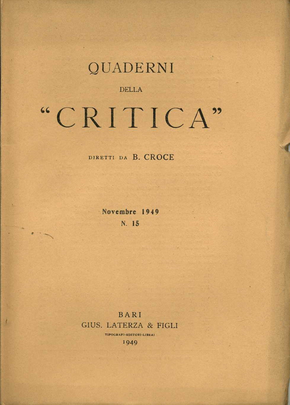 quaderni della critica n. 15 novembre 1949 benedetto croce