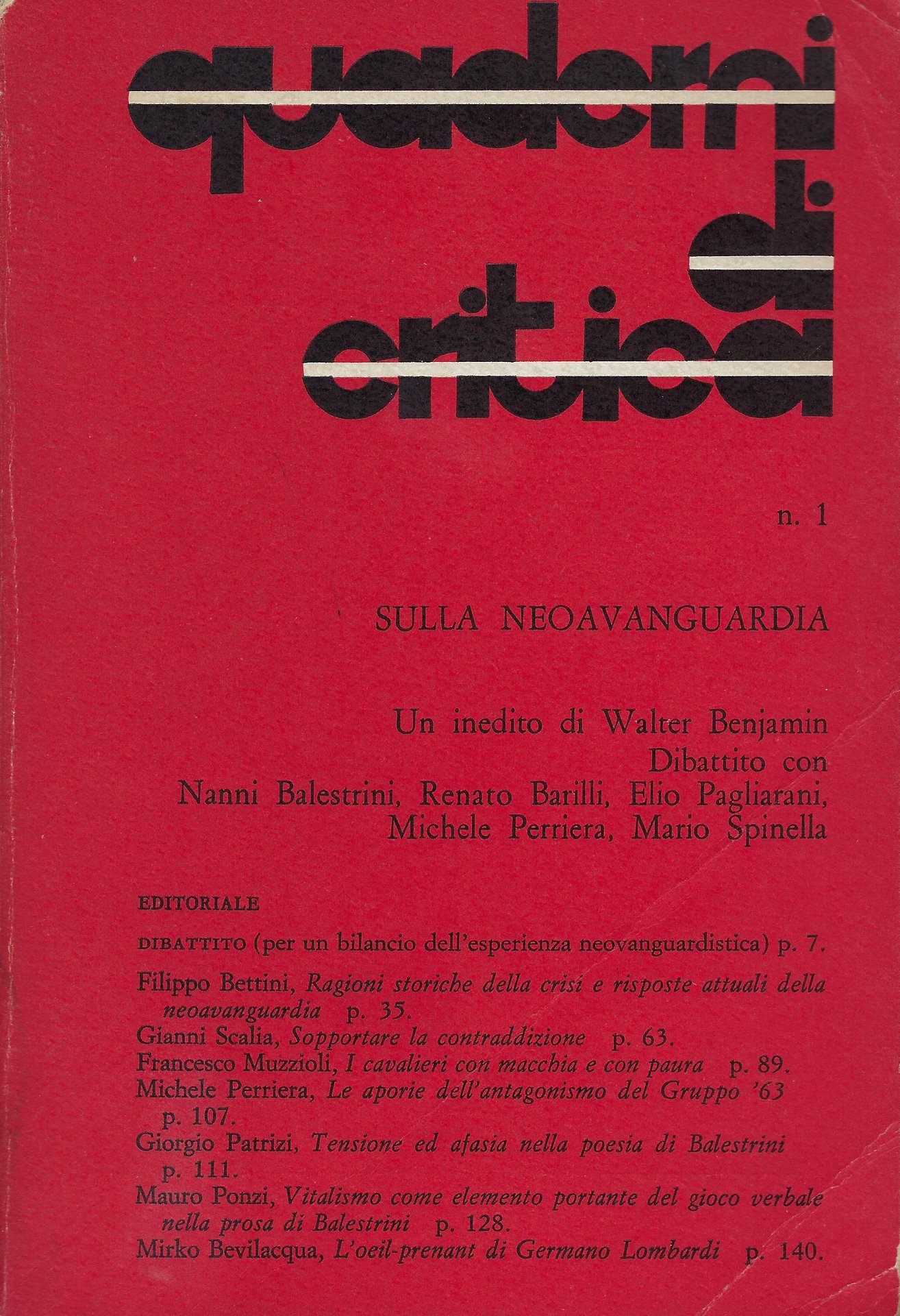 Quaderni di critica, n. 1. Sulla Neoavanguardia