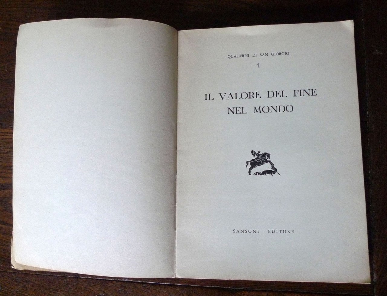 QUADERNI DI SAN GIORGIO 1.IL VALORE DEL FINE NEL MONDO,1955 Sansoni[filosofia