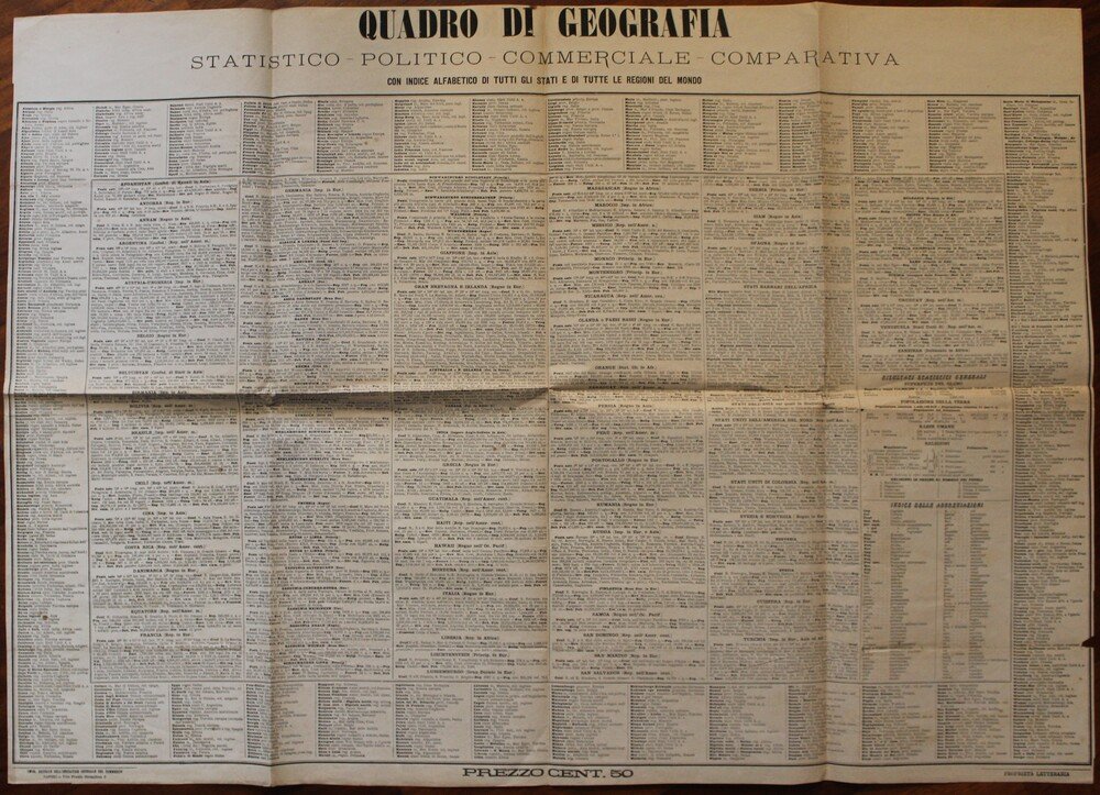 Quadro di geografia statistico - politico - commerciale - comparativa con indice alfabetico di tutti gli stati e di tutte le regioni del mondo