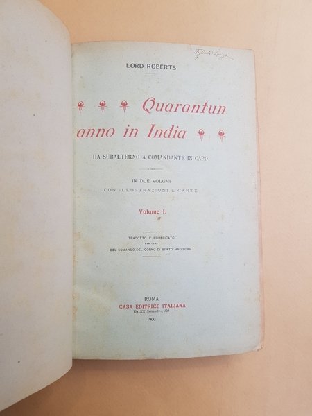 Quarantun anno in India da subalterno a comandante in campo Maresciallo di Campo Lord Roberts. Con illustrazioni e carte. Tradotto e pubblicato per cura del Comando del Corpo di Stato Maggiore.