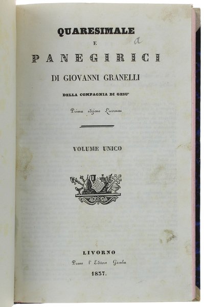 QUARESIMALE E PANEGIRICI. Volume unico.