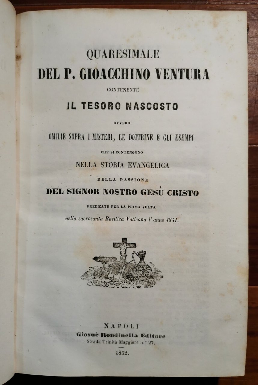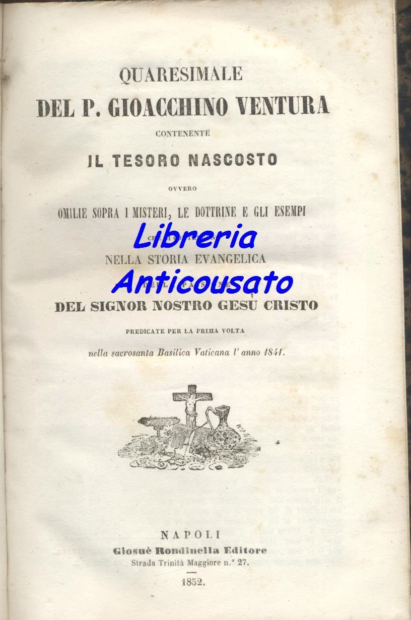 QUARESIMALE IL TESORO NASCOSTO di Padre Gioacchino Ventura 1852 Rondinella Libro